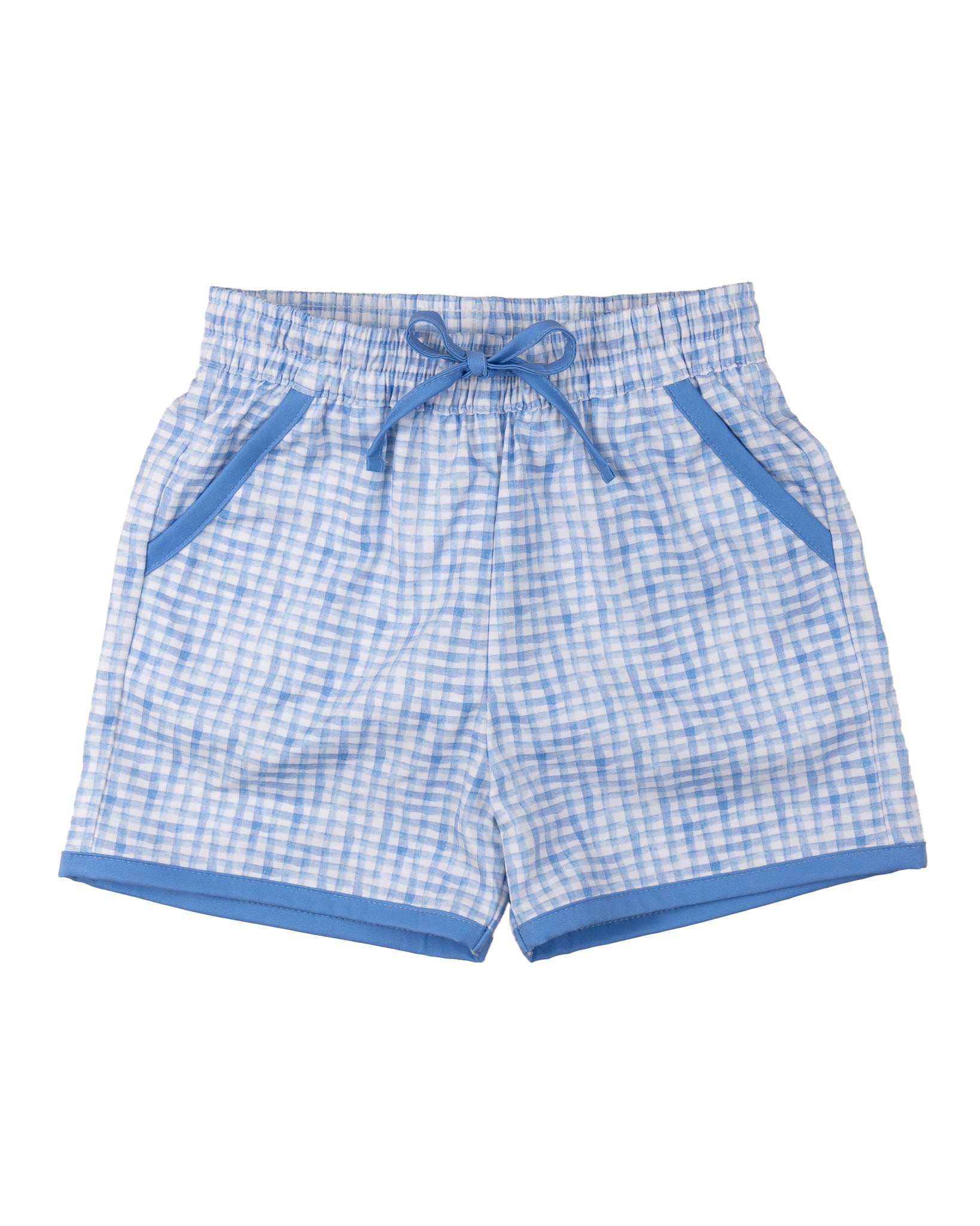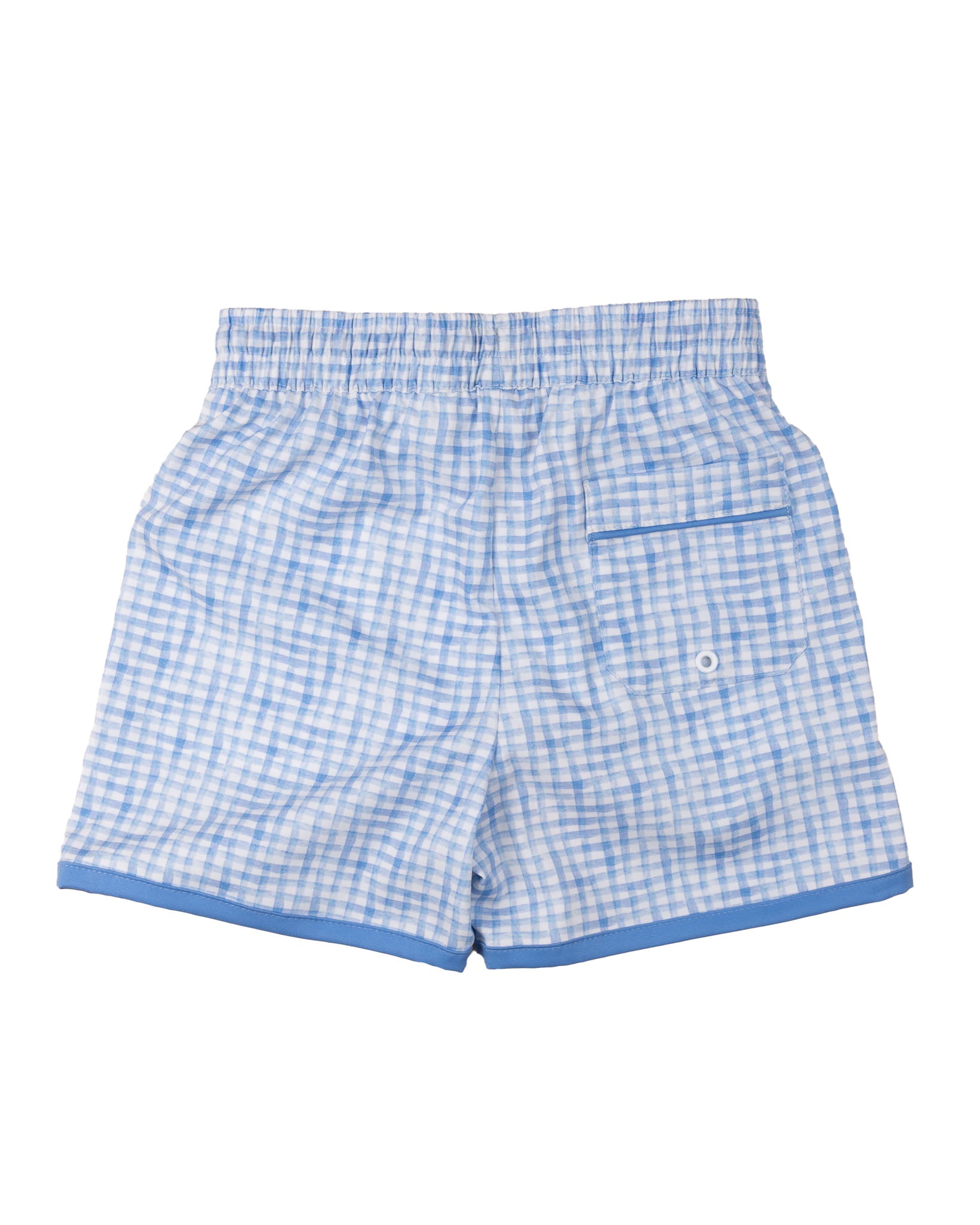 Blue Watercolor Plaid Swim Trunks-FINAL SALE