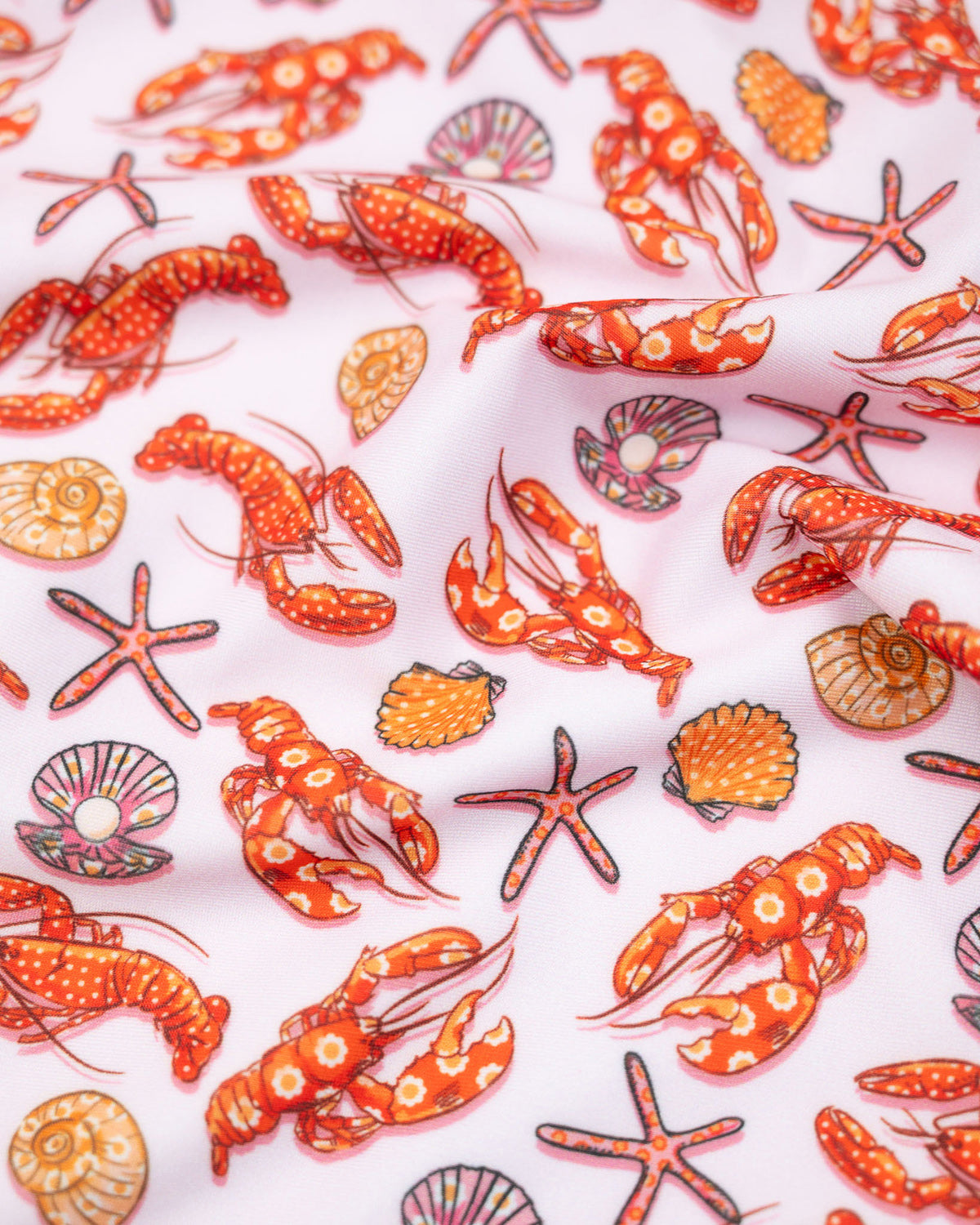 Make waves with our Red as a Lobster Long Sleeve Bikini, a chic swimsuit set perfect for sunny adventures! This two-piece bikini features a classic red, white, and pink palette with a lobster and shell pattern that celebrates Americana charm. Designer details include a long-sleeve rash guard top for extra sun protection, paired with matching bottoms for a flattering and secure fit. Whether at the beach or poolside, this stylish bikini ensures your little one makes a splash in comfort and style!