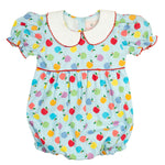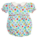 Our Apple Toss Bubble is a back to school favorite for the tiniest students! With bright apple prints, fluttery puff sleeves, and comfy leg openings, this bubble is made for learning, playing, and snuggling all season long. It’s the perfect baby girl back to school outfit.