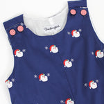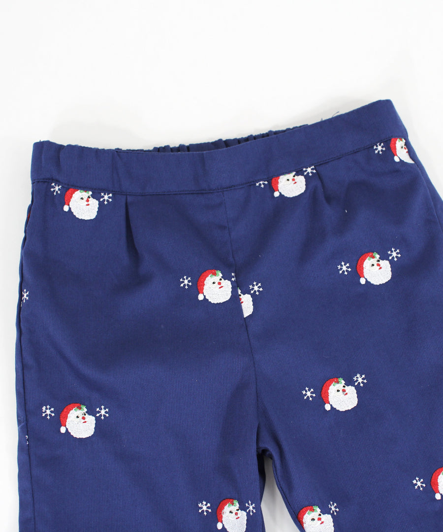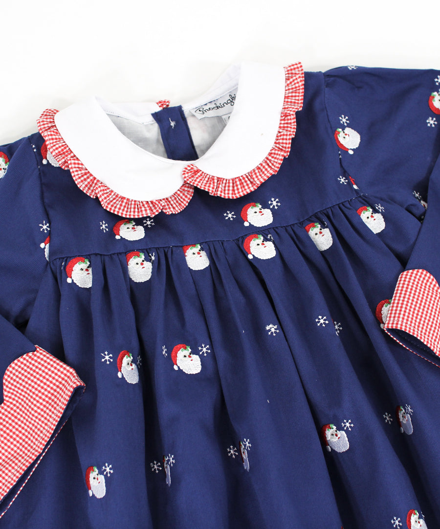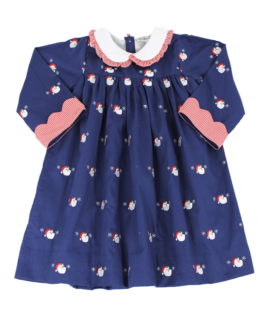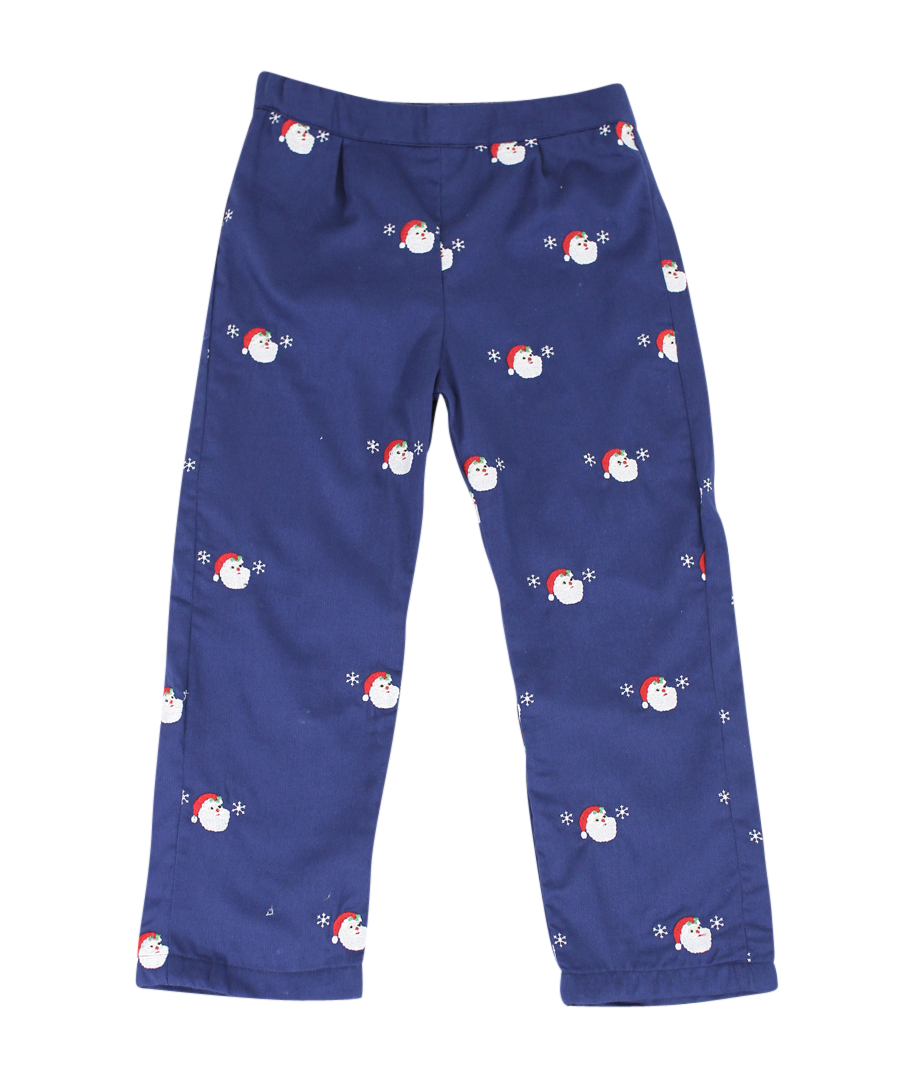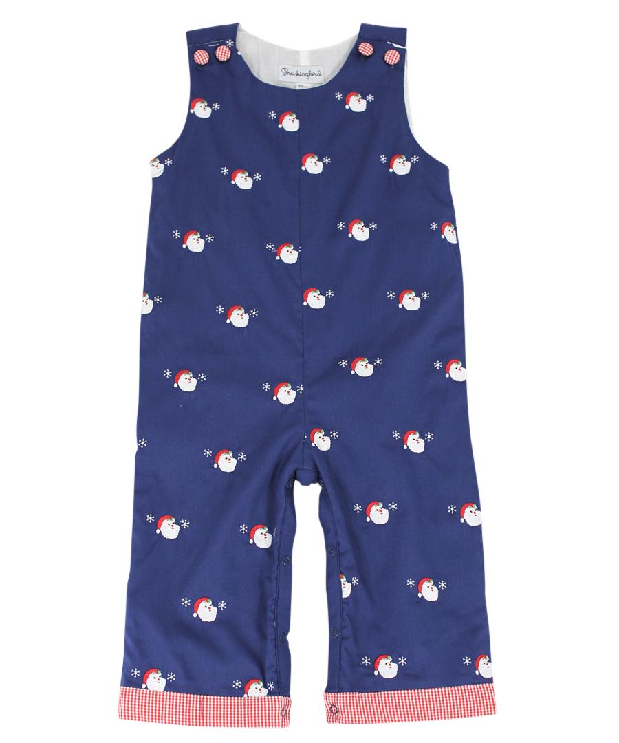 Back by popular demand! The perfect classic look for the holidays. Navy pique cotton longall with embroidered Santas. Metal snaps in stride. Monogram name or initals on chest for a personal touch.