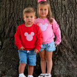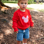 Style meets comfort in this Main Street Applique Mouse Sweatshirt in Red. Perfect for a play date with friends or cooler nights at Disney. Personalize your sweatshirt with a monogram or name. Fits true to size, size up for an oversized fit.