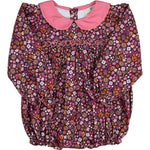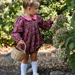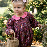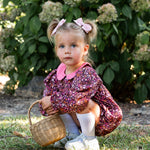 Soft, sweet, and made for fall—our Mulberry Meadow Smocked Bubble features delicate smocking, ruffled sleeves, and a rich ditsy floral print. Designed for warmth and comfort, this bubble is perfect for playdates, picture days, or joining in on autumn adventures.
