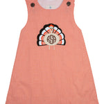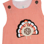 Our Turkey Applique Gingham Jumper brings playful charm to your little one's Thanksgiving look! Featuring a cheerful turkey applique and a classic gingham pattern, this fall favorite is perfect for school parties, family dinners, and seasonal outings.