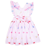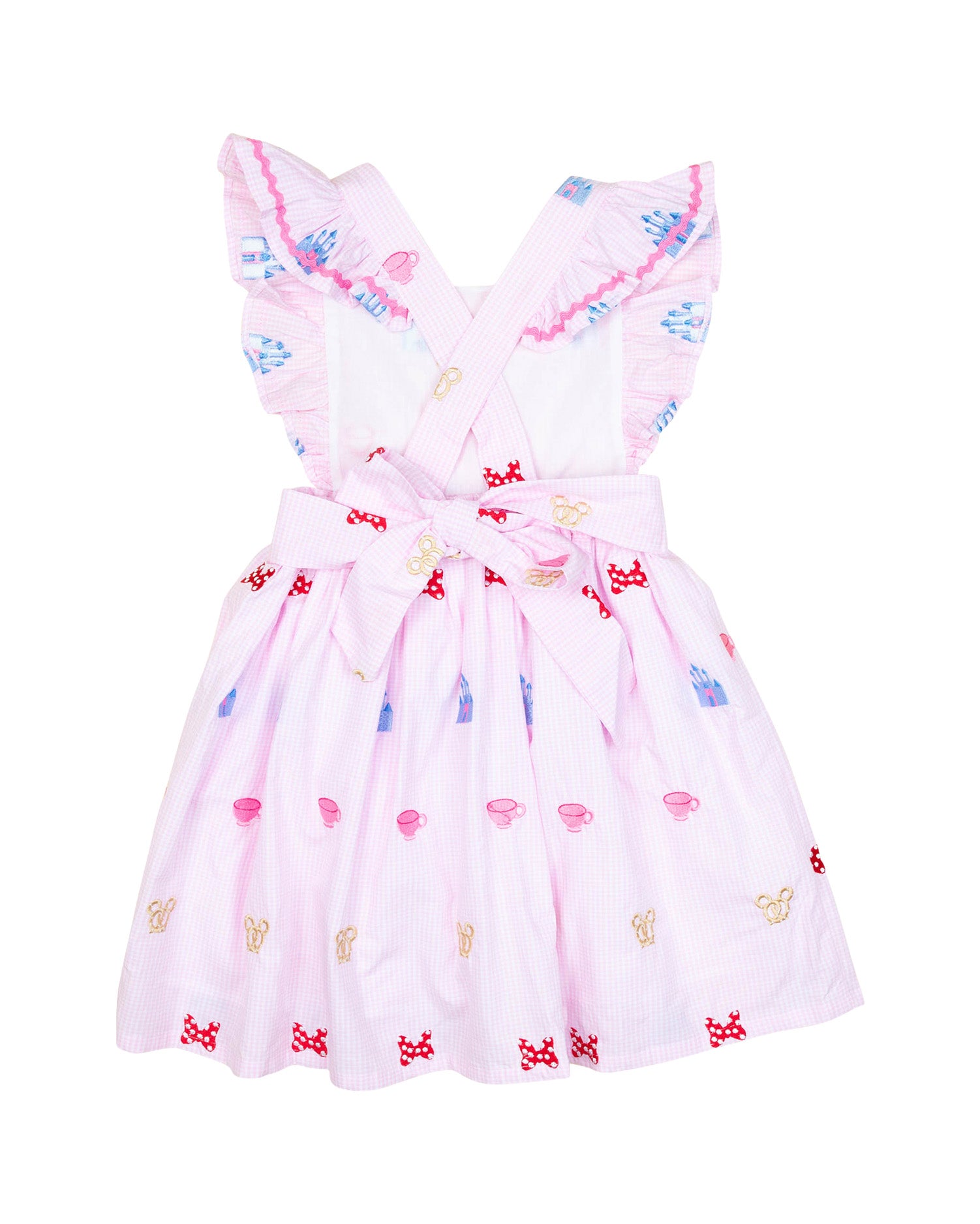 Let the magic of the parks come to life in this embroidered girls dress. This dress feature some mouse favorites throughout and is the perfect outfit for a trip to Disney!