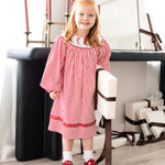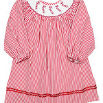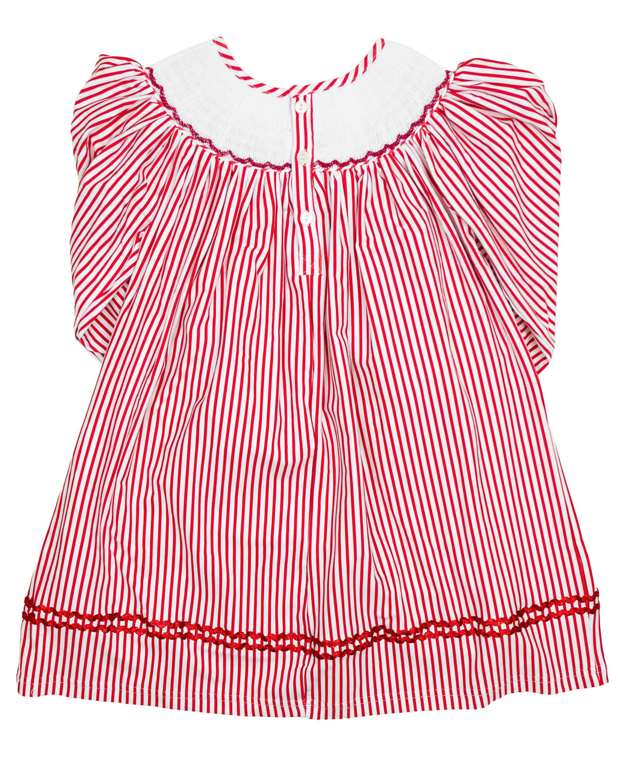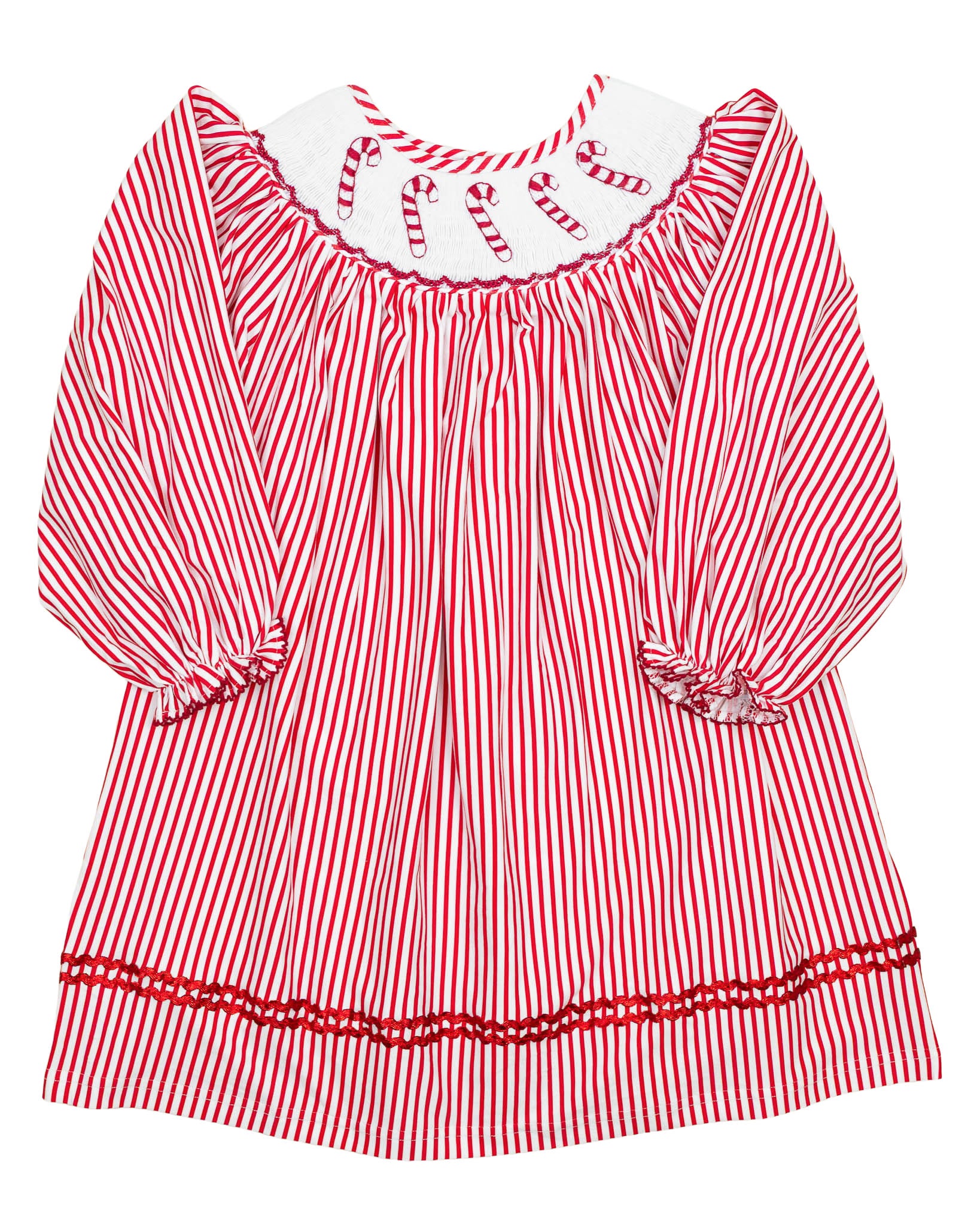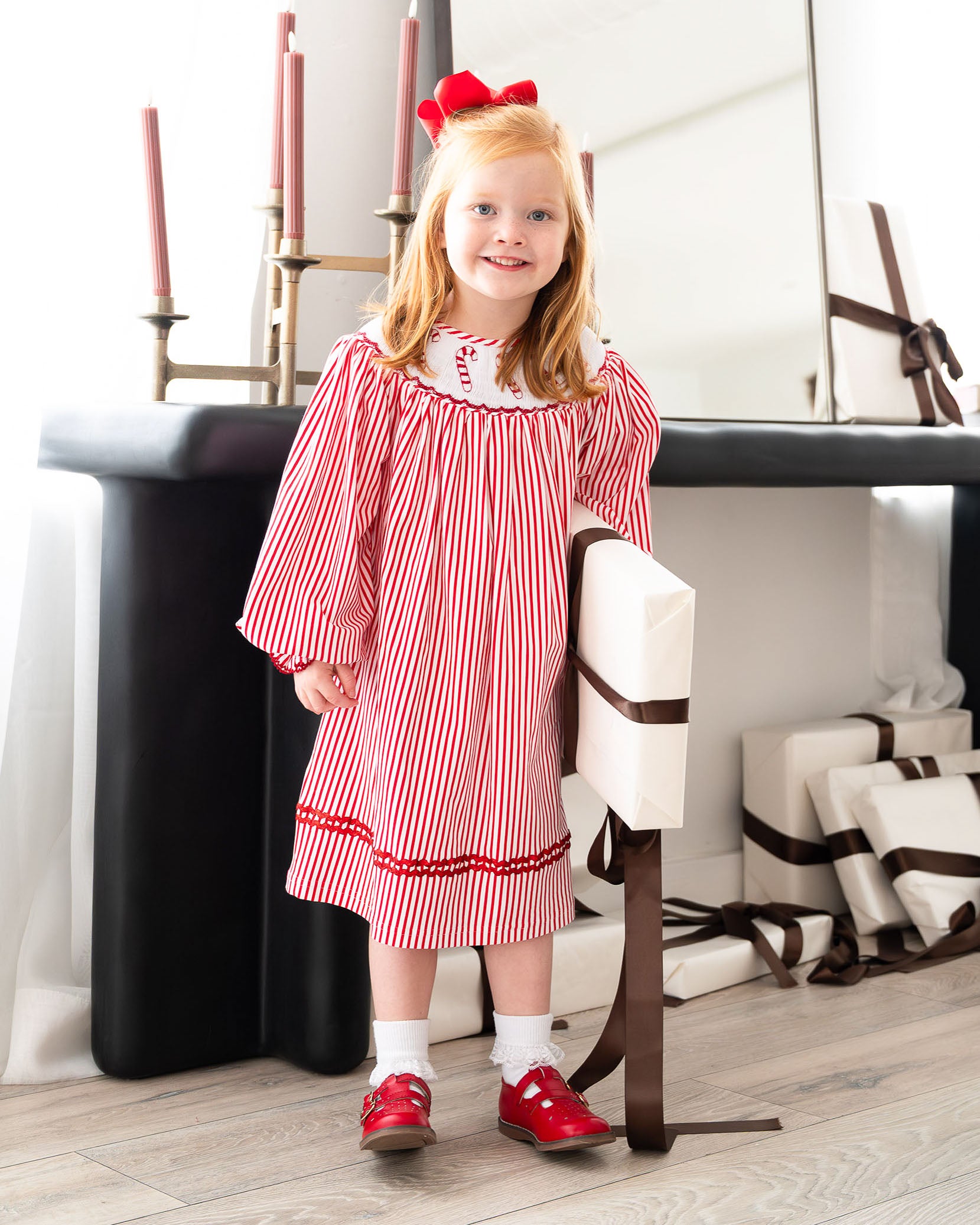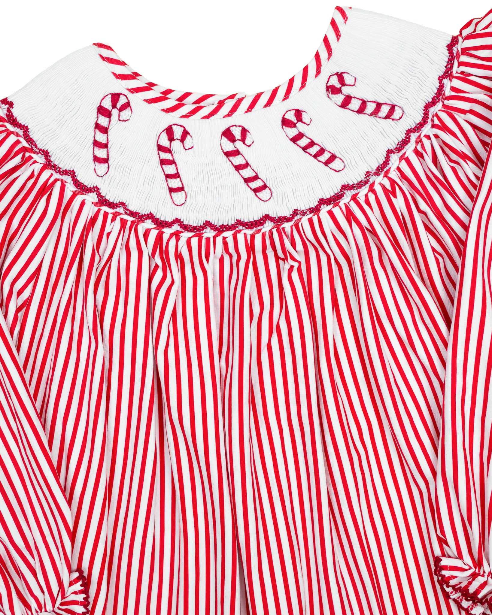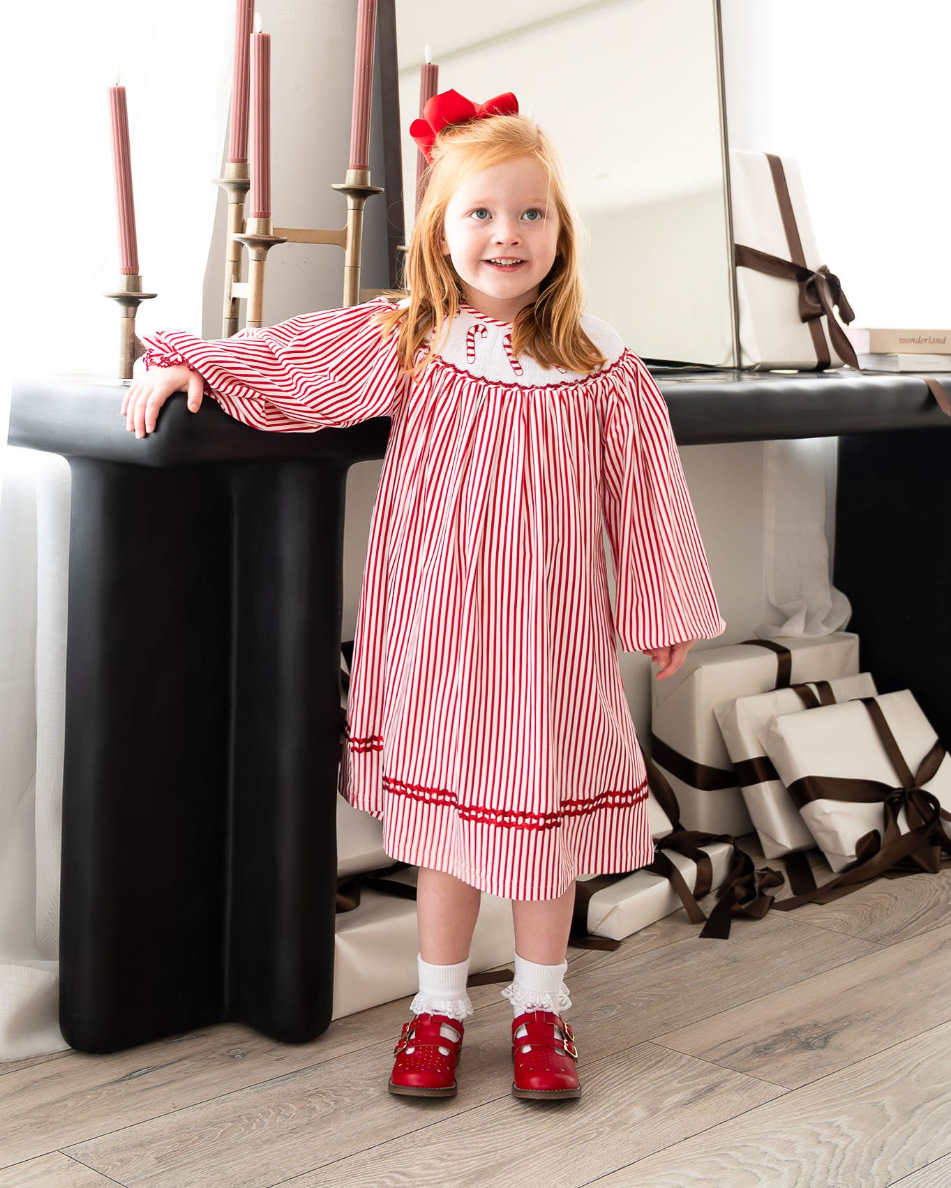 Sweet as a candy cane, our Candy Cane Smocked Bishop Dress brings classic holiday cheer in a festive red stripe. Hand-smocked detailing with embroidered candy canes makes this dress a keepsake for seasons to come. The flowy bishop silhouette and soft cotton fabric ensure comfort from Christmas Eve dinner to morning gifts under the tree.