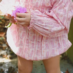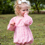 Let your little one shine in this adorable Cowgirl Boots Bubble with Gold Lurex! Designed for comfort and style, this one-piece features a playful western boot print, delicate gold lurex threading, and charming ruffle details at the sleeves and legs. Perfect for rodeo-ready cuteness, holiday photos, or everyday adventures with a touch of sparkle!