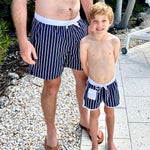 Navy Striped Mens Swim Trunks-FINAL SALE