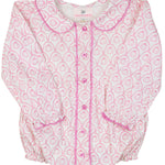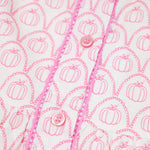 Dress your little pumpkin in the sweetest seasonal style! The Pumpkin Scallop Print Bubble boasts charming scallop detailing, playful ruffle trims, and pretty pink buttons. Designed for comfort and cuteness, this one-piece is perfect for festive fall outings and cozy cuddles.
