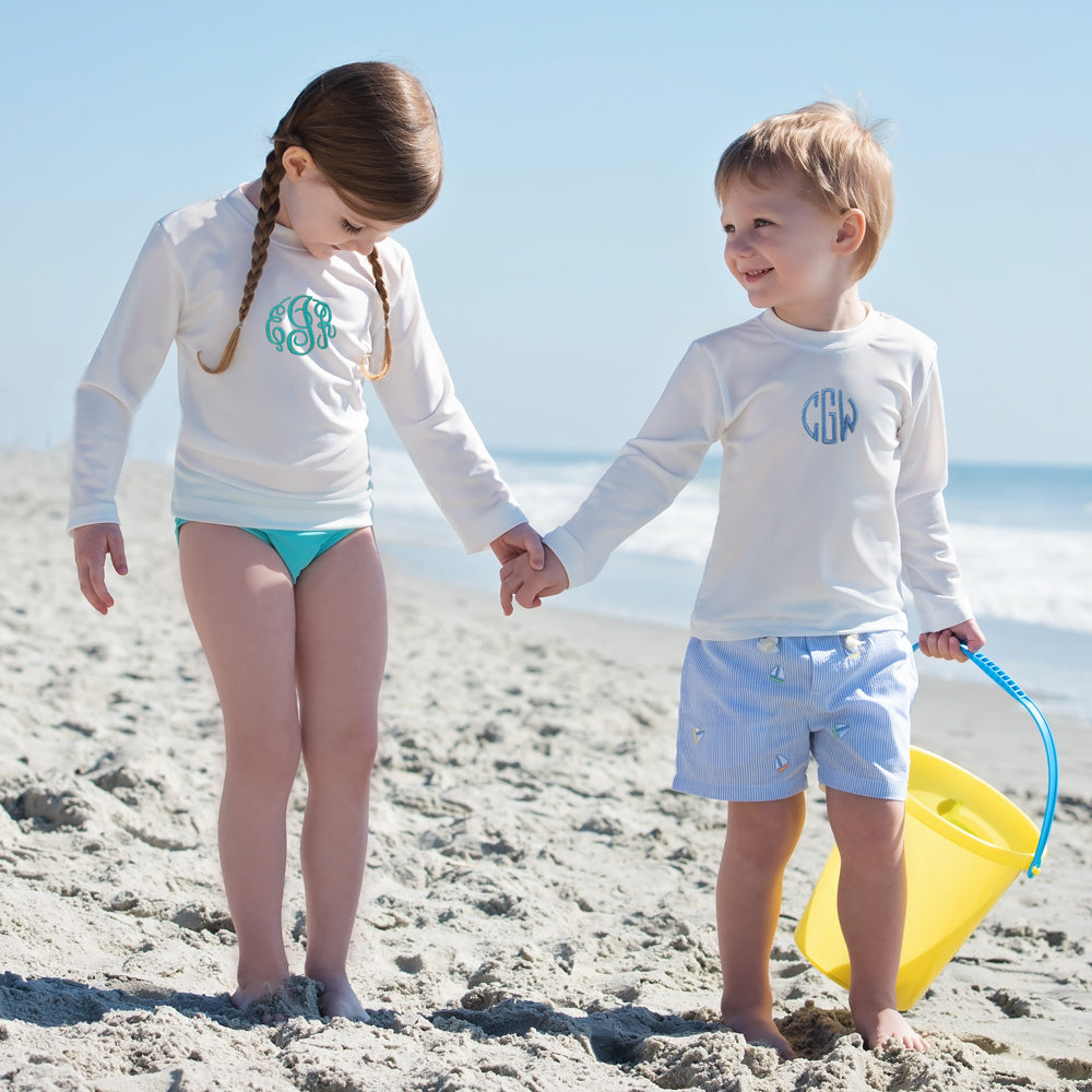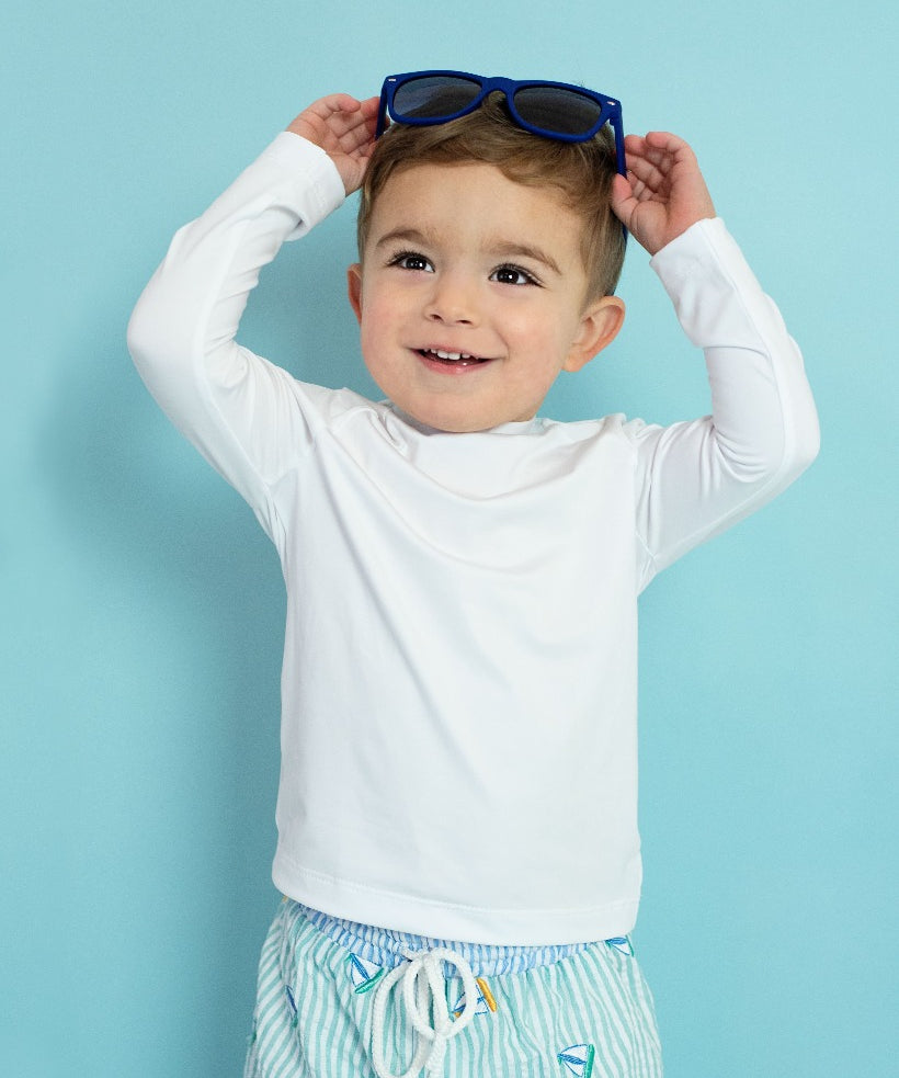 Our rash guard long sleeve in white provides excellent protection and warmth. This water wear is made of compact knitted fabric that guards your child from the sun's rays, the cold, and scratching. UPF50+