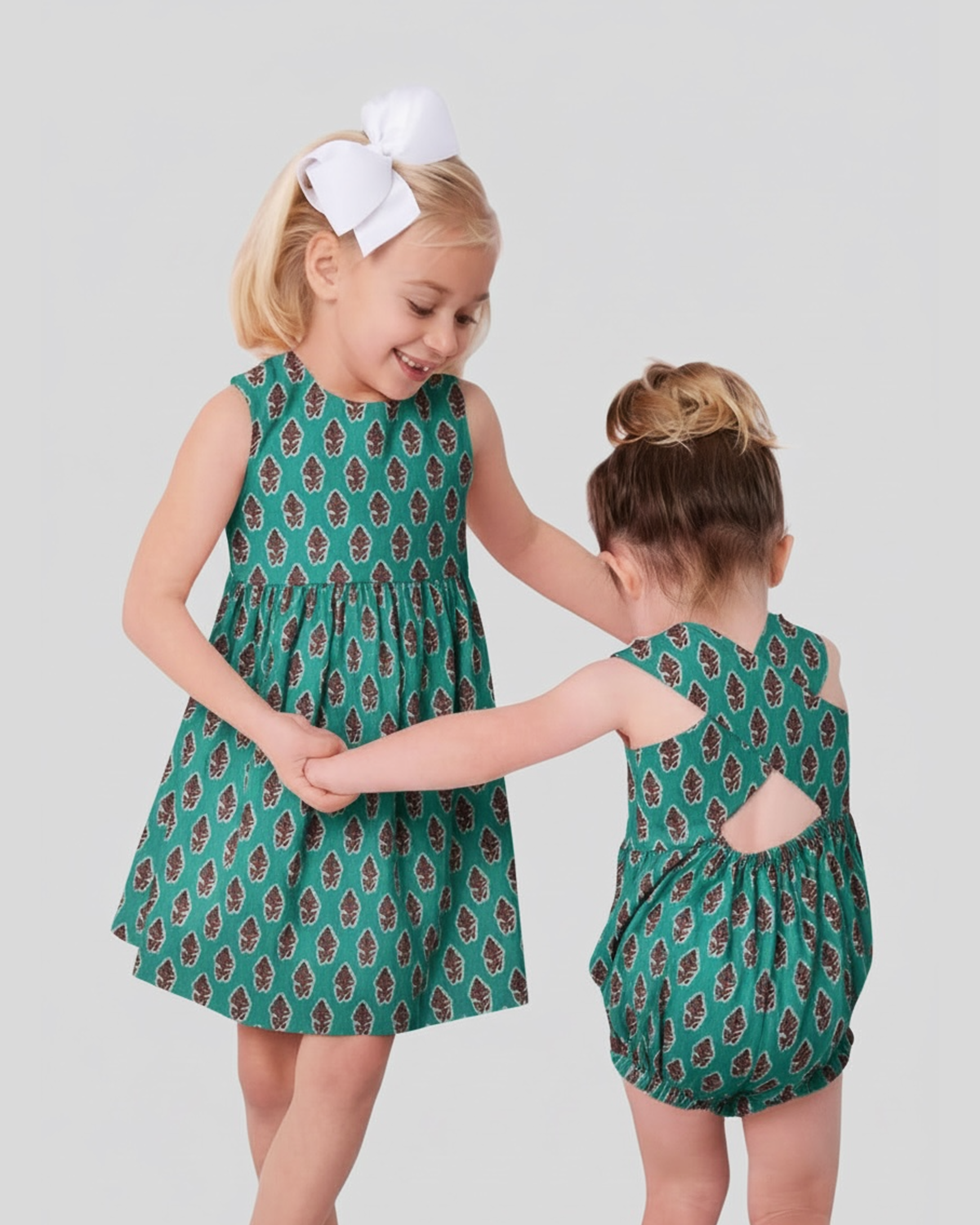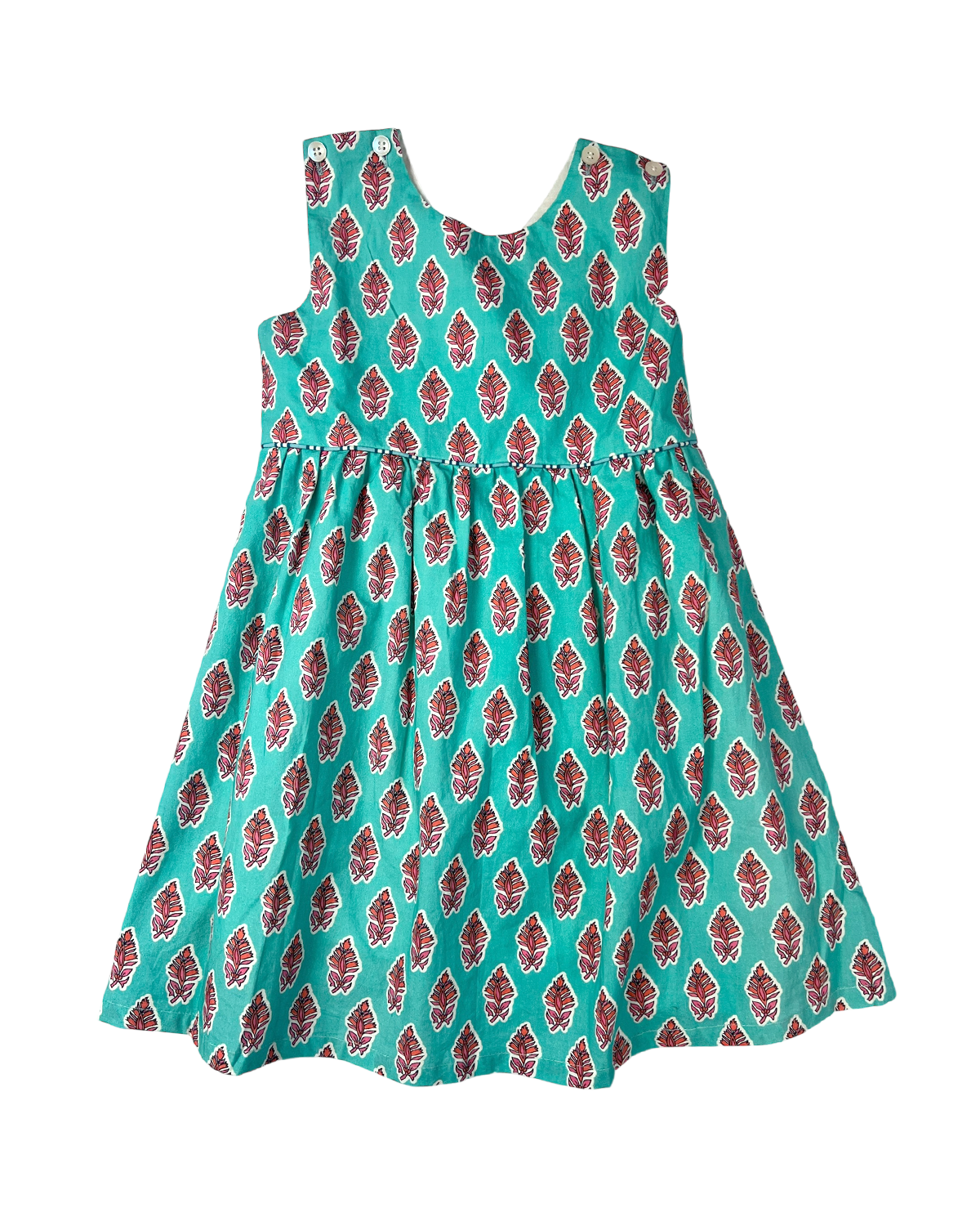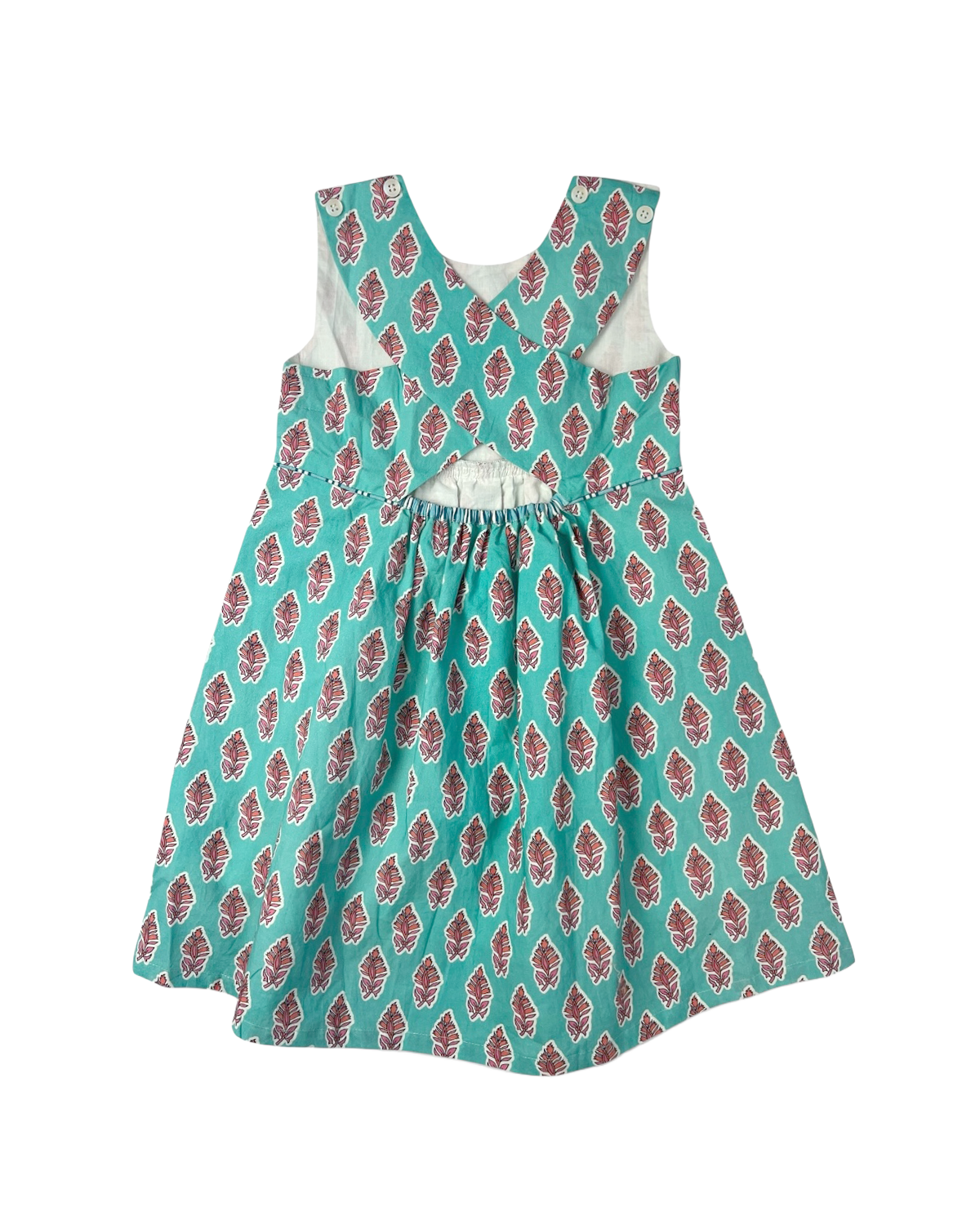 This charming dress features a soft blushing leaves block print that brings timeless fun to any occasion. Designed for comfort and effortless wear, its made of lined cotton and has adjustable button straps. It’s perfect for everyday adventures and special moments alike. The criss cross open back adds a refined, classic touch. A beautiful addition to any little girl’s wardrobe.