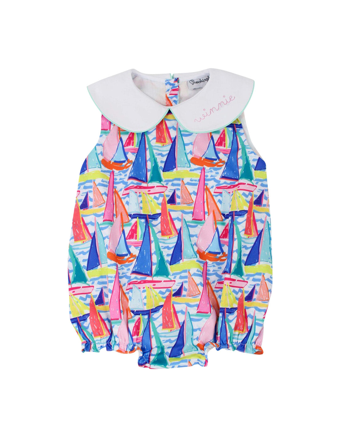 Set sail in style with our Sailing Soiree Bubble, a delightful one-piece featuring vibrant sailboat prints on a breezy, lightweight fabric. Designer details include a crisp Peter Pan collar with an optional personalized monogram, elastic leg openings for all-day comfort, and snap closures for easy changes. Perfect for sunny adventures by the shore or summer gatherings, this bubble is a must-have for your little one’s wardrobe.