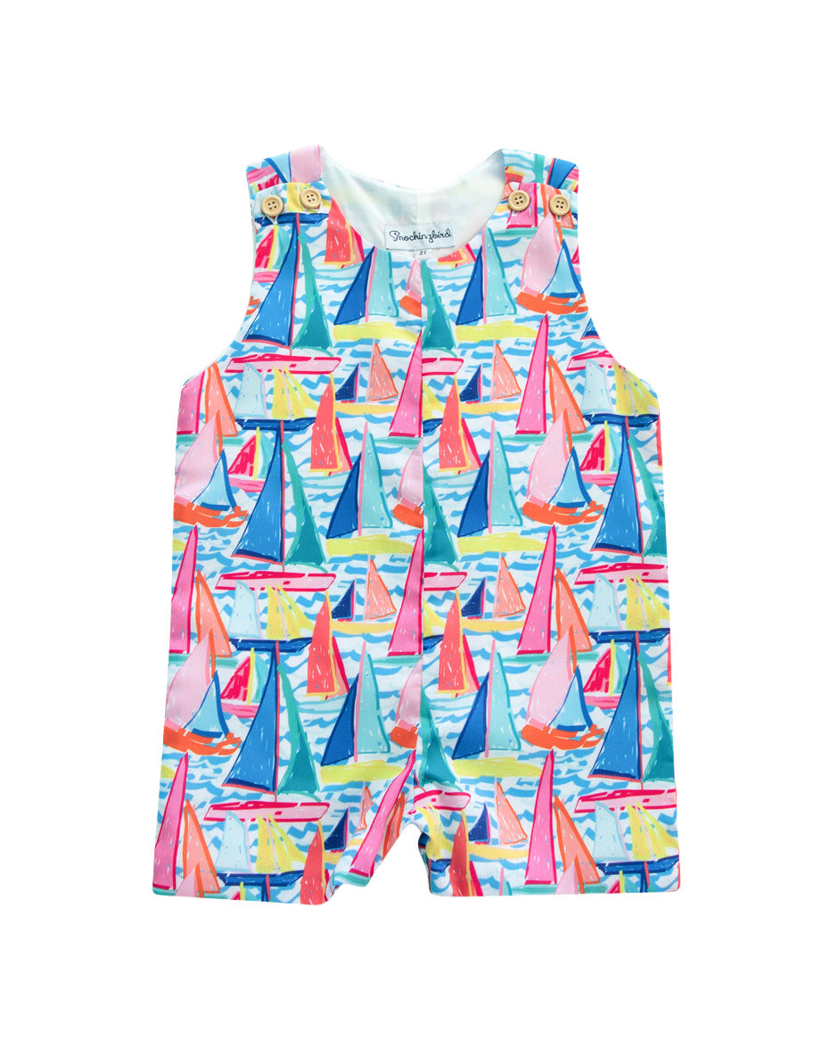 Our Sailing Soiree Shortall combines classic charm and practicality in one versatile piece. Featuring bold sailboat patterns, this shortall is crafted from soft, breathable fabric with buttoned shoulder straps for fuss-free dressing. Ideal for sunny days or seaside adventures, it pairs effortlessly with the Sailing Soiree Shorts for a coordinated sibling look.
