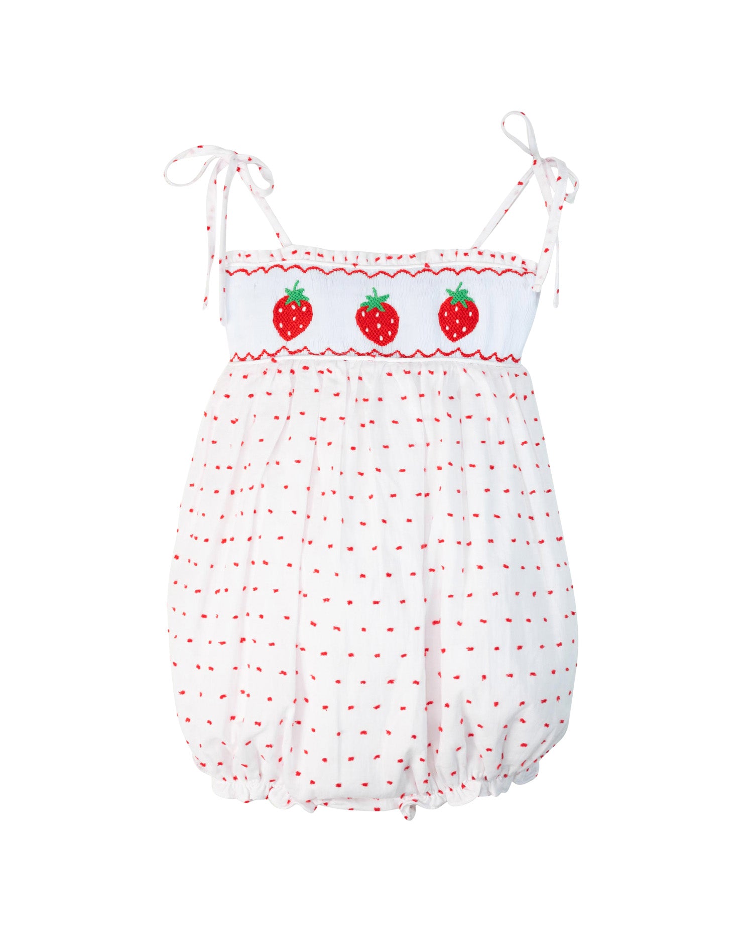 Strawberries Smocked Swiss Dot Bubble