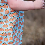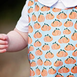 If you are looking for something that will stand out this fall, look no further. This blue pumpkin longall is so darling for all occasions. This longall features a blue background with orange colored pumpkins throughout and adjustable straps. Add a name or monogram center chest for a personal touch.