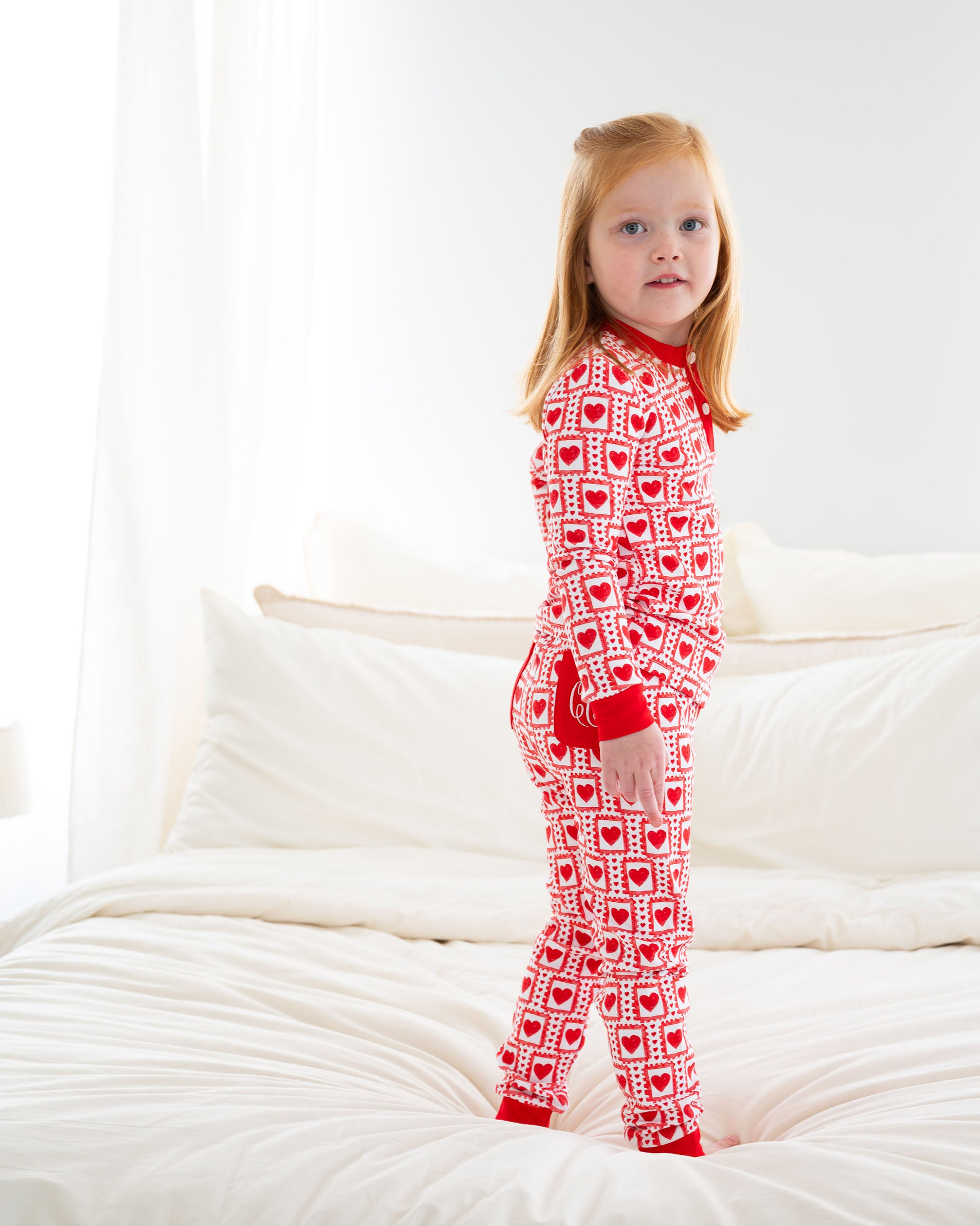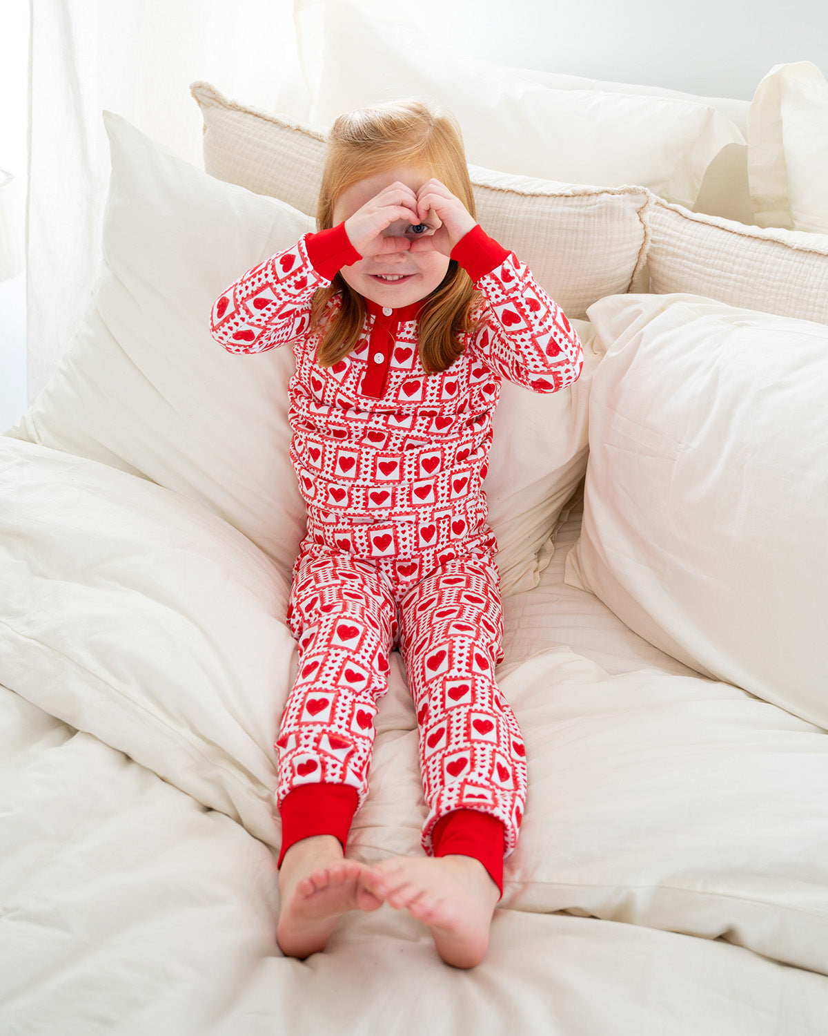 Have happy and heart-filled dreams in this super soft heart print pajama set. Designed in a cheerful heart-print pattern, these pajamas are perfect for Valentine’s Day. Perfect for little sweethearts who love to play, laugh, and shine in style.