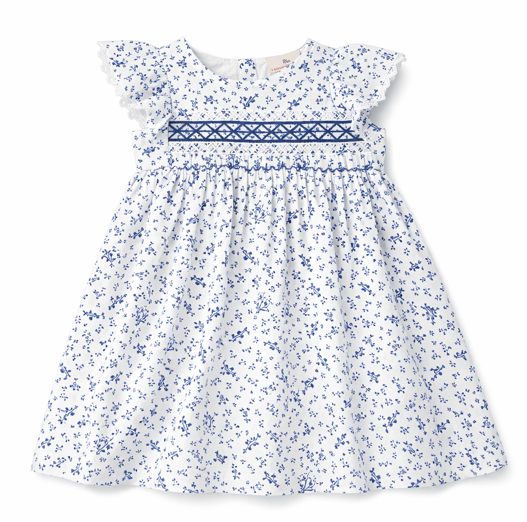 This lovely blue floral dress features a softly gathered skirt and flutter-style sleeves for gentle movement. The delicate posy print adds a fresh spring touch. Designed with a relaxed silhouette for comfortable all-day wear. A beautiful choice for Easter Sunday, garden parties, and springtime celebrations.