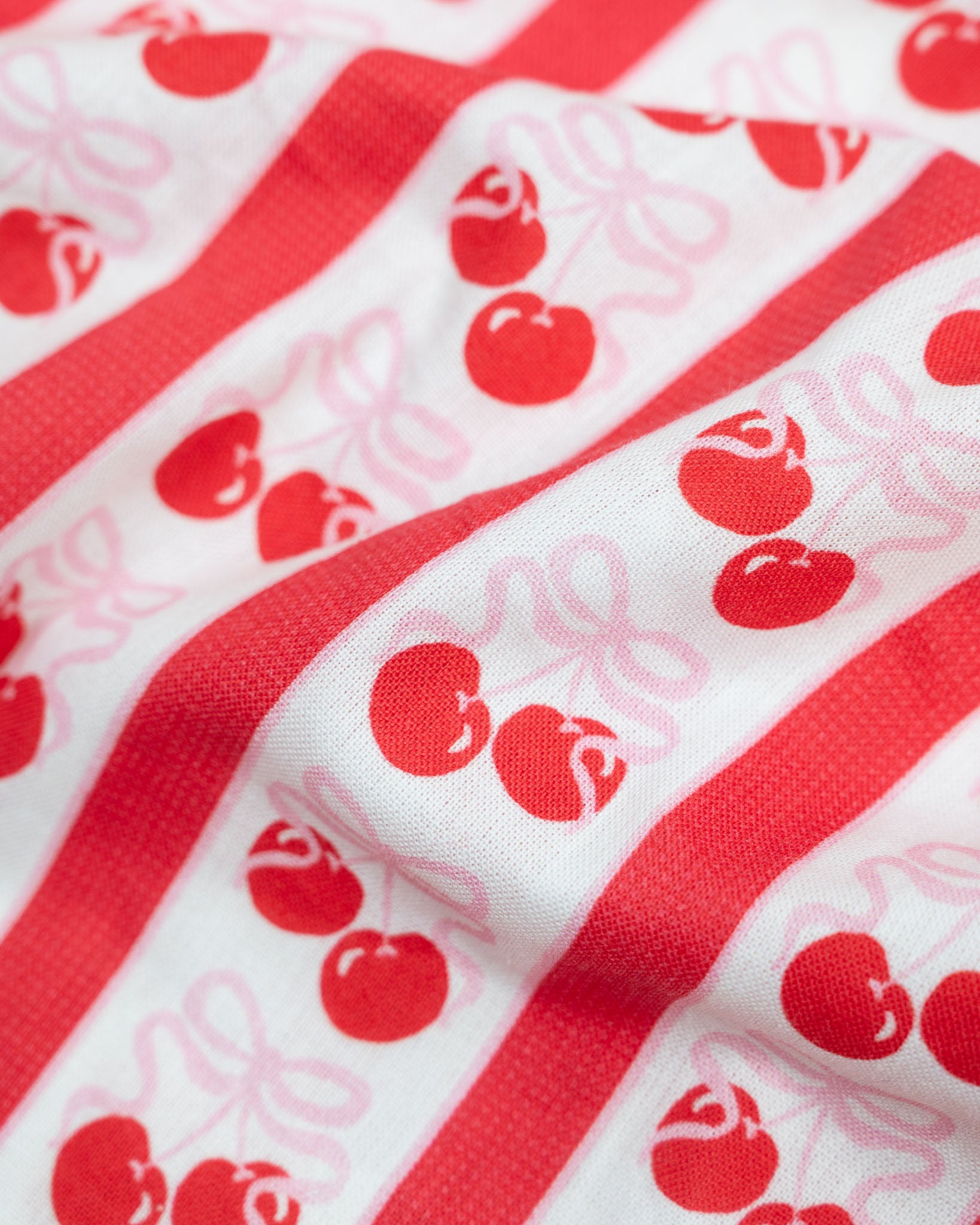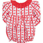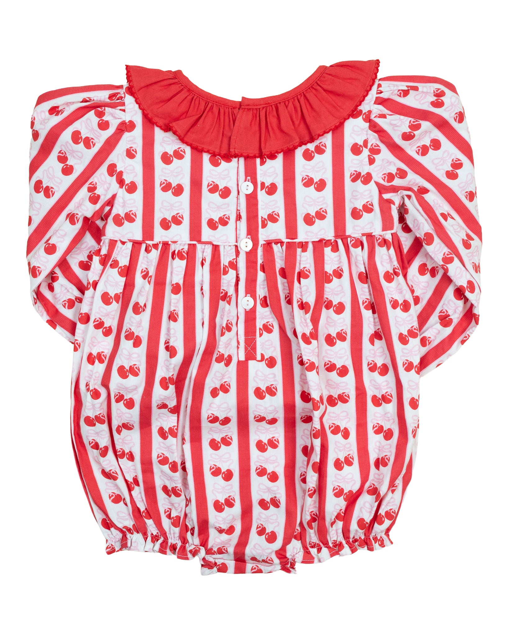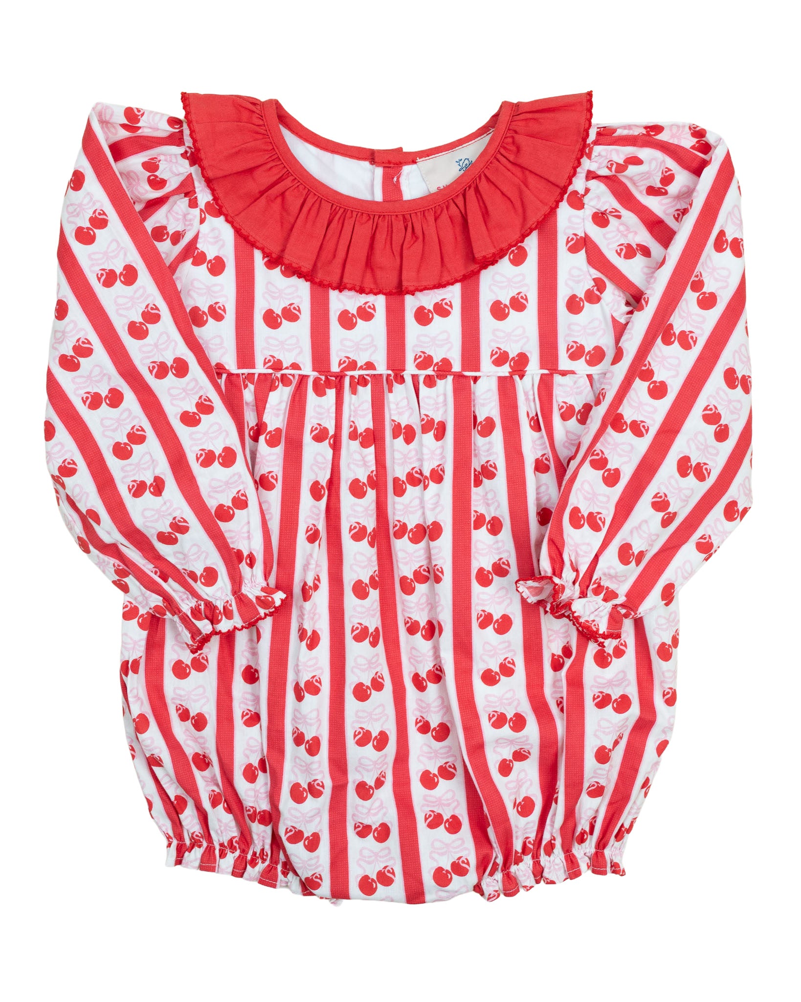 Berry sweet style for your littlest love! The Cherry On Top Bubble features a playful cherry print, ruffle colalr, and long sleeves for a picture-perfect look. Comfortable enough for playtime and charming enough for family photos, it’s a timeless piece you’ll treasure for years.