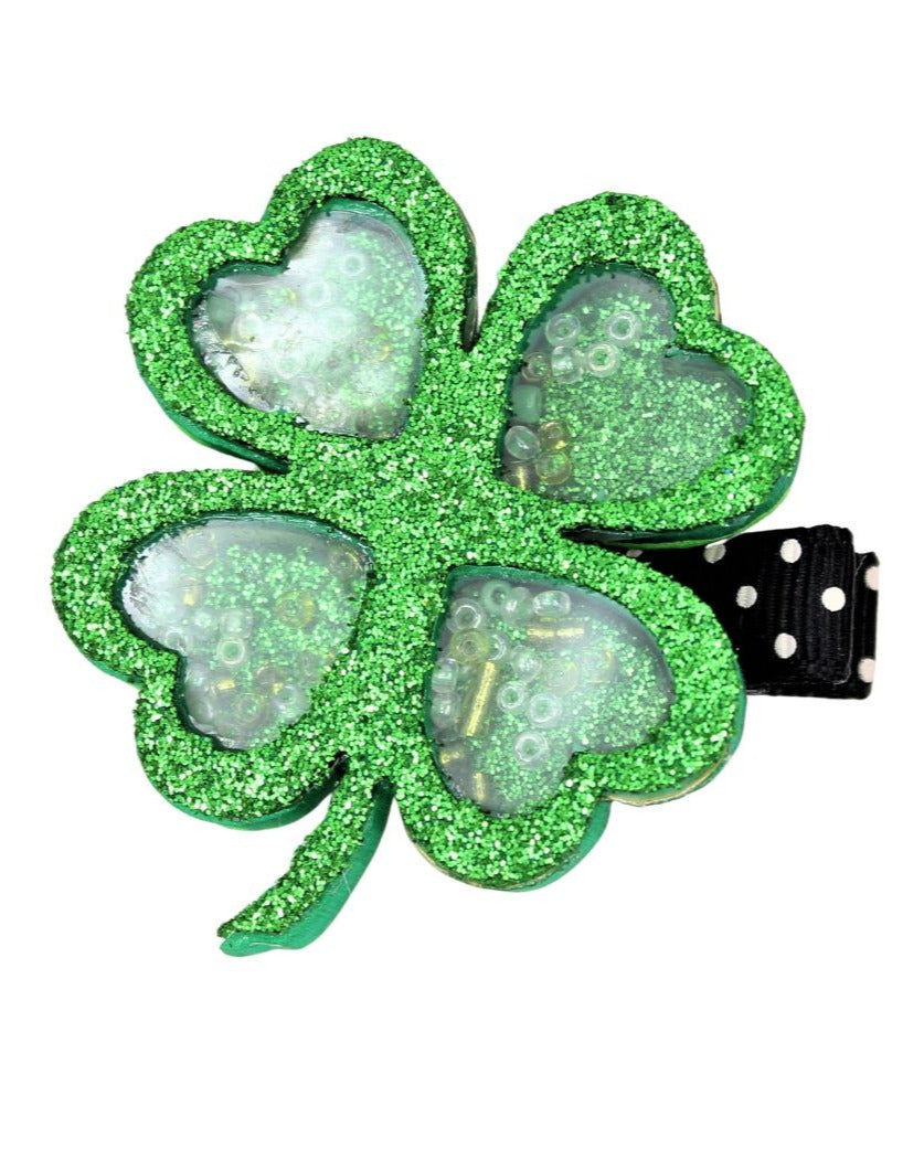Cute clover shaker hair clip perfect for St. Patrick's Day!