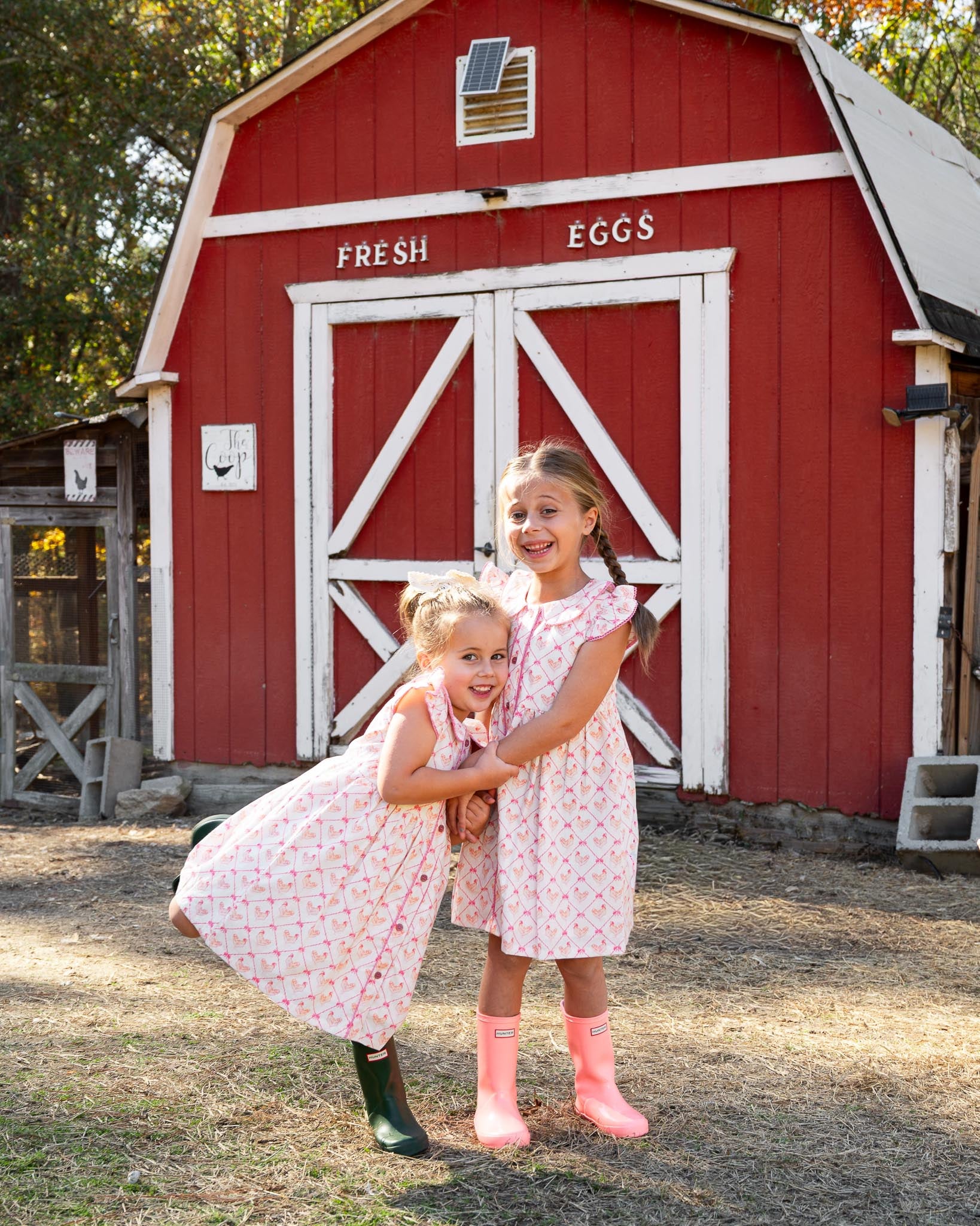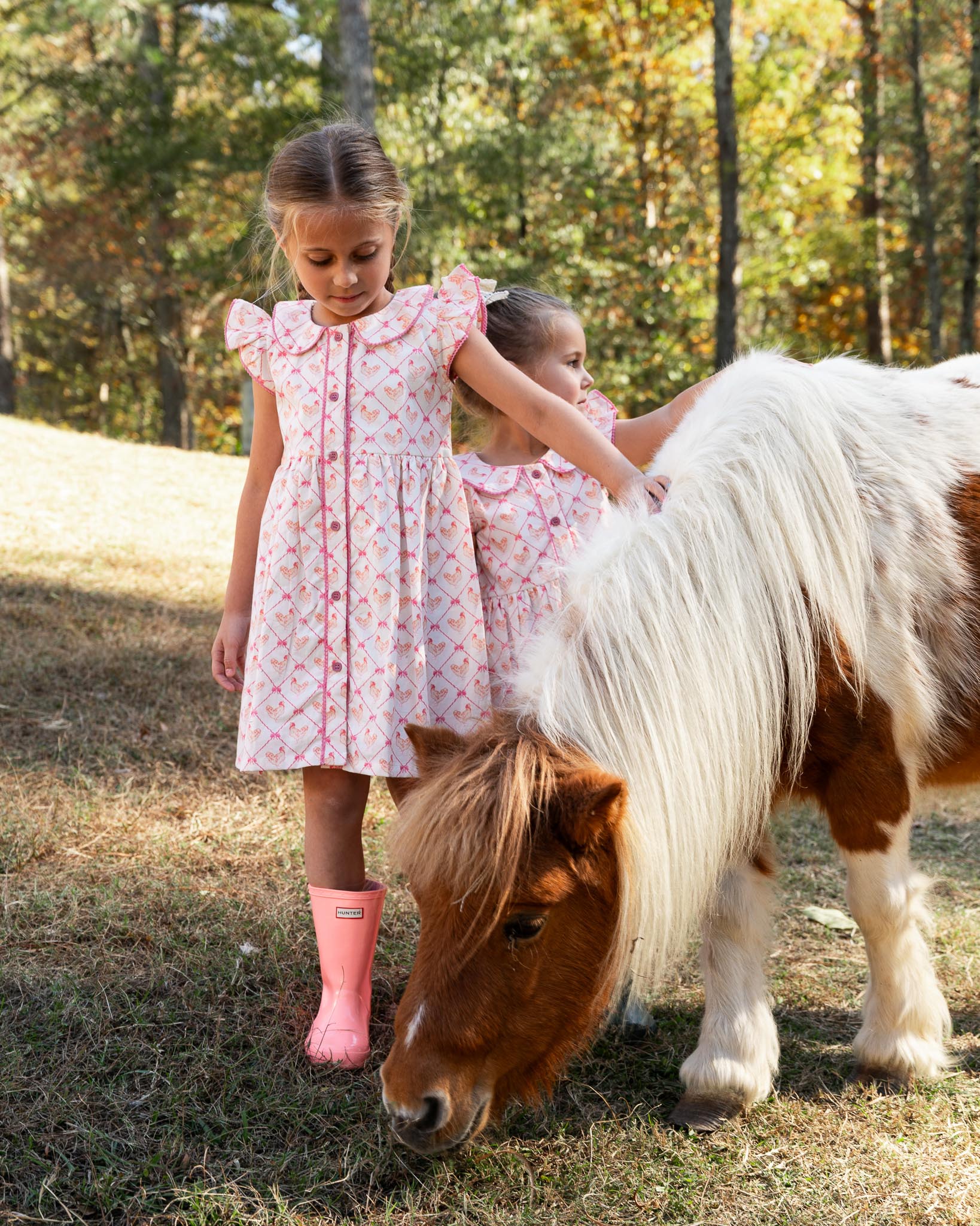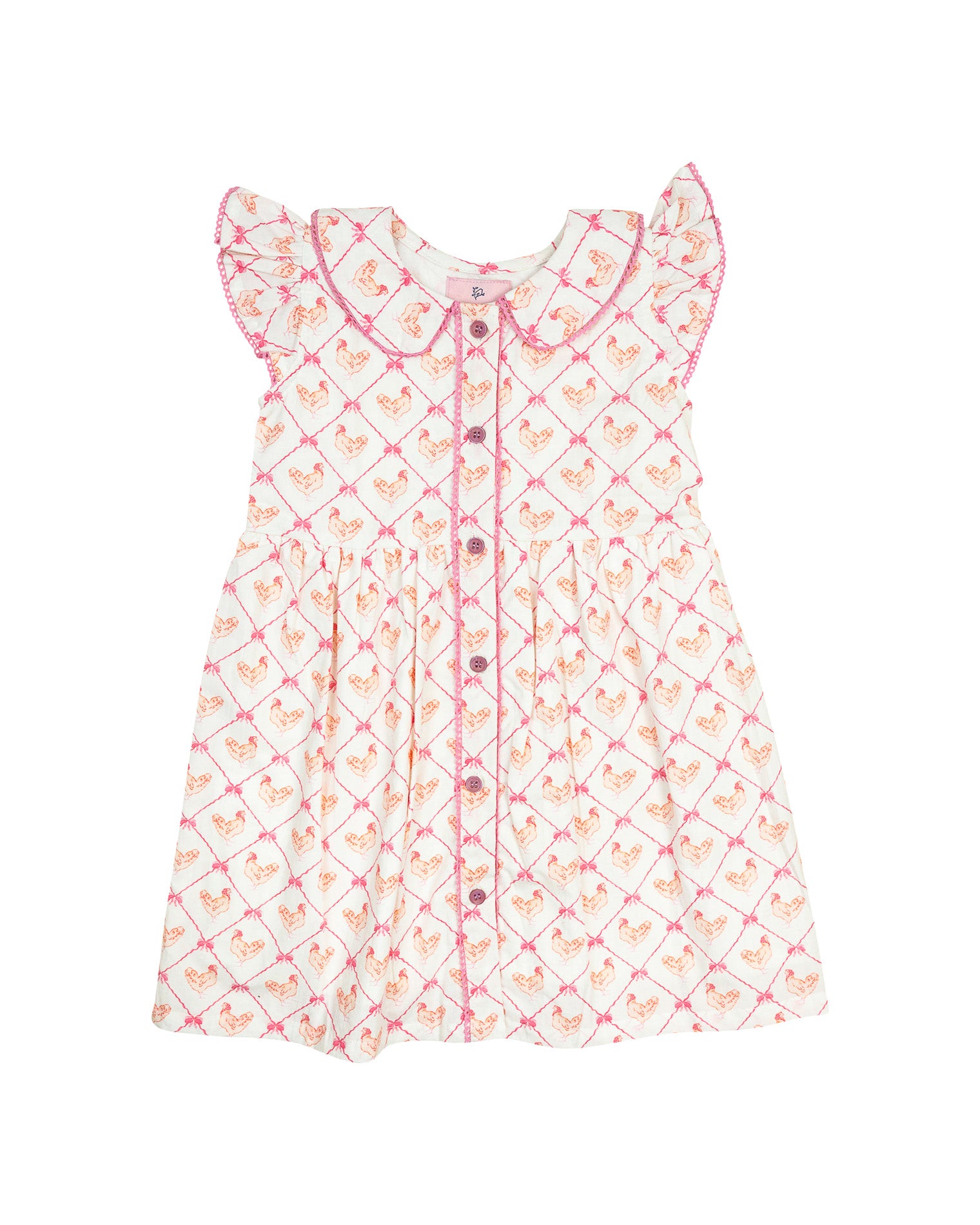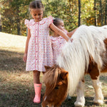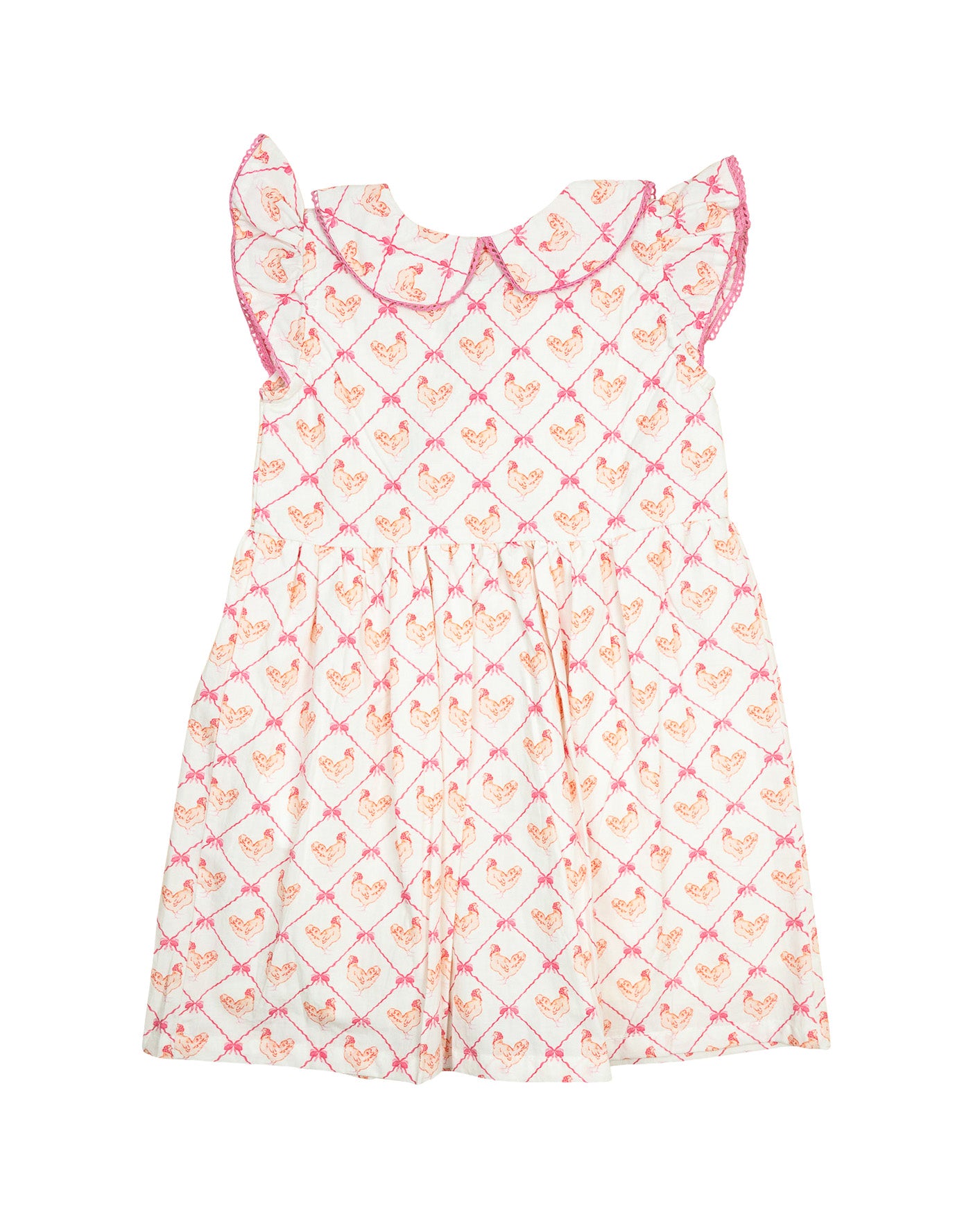 The Mother Hen Dress brings barnyard fun to spring celebrations. Featuring a playful print in soft colors, this charming piece is ideal for Easter festivities, farm visits, and everyday fun.