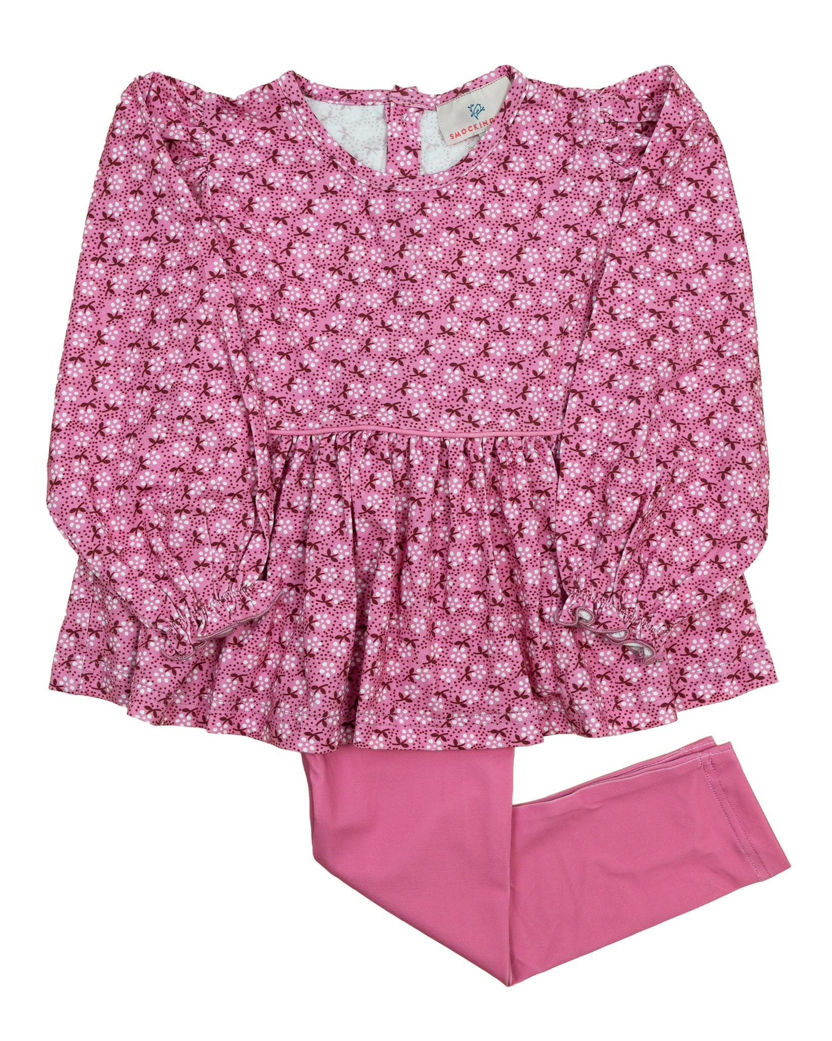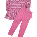 This darling fall knit set includes a floral peplum-style top and matching pink leggings. Perfect for cooler weather, the Pink Ditsy Floral Knit Legging Set is an easy go-to outfit for school days and weekend fun.