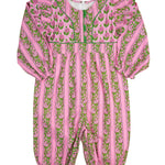 Pretty in pink and perfect for fall, our Pink Floral Mixed Block Print Romper is hand block printed in Jaipur on soft and breathable 100% poplin cotton. The mixed floral patterns add a playful twist, while sweet ruffles make it extra darling. Lightweight enough for warm afternoons, and easy to layer on cooler days—this romper is a must-have for your little one’s fall wardrobe.