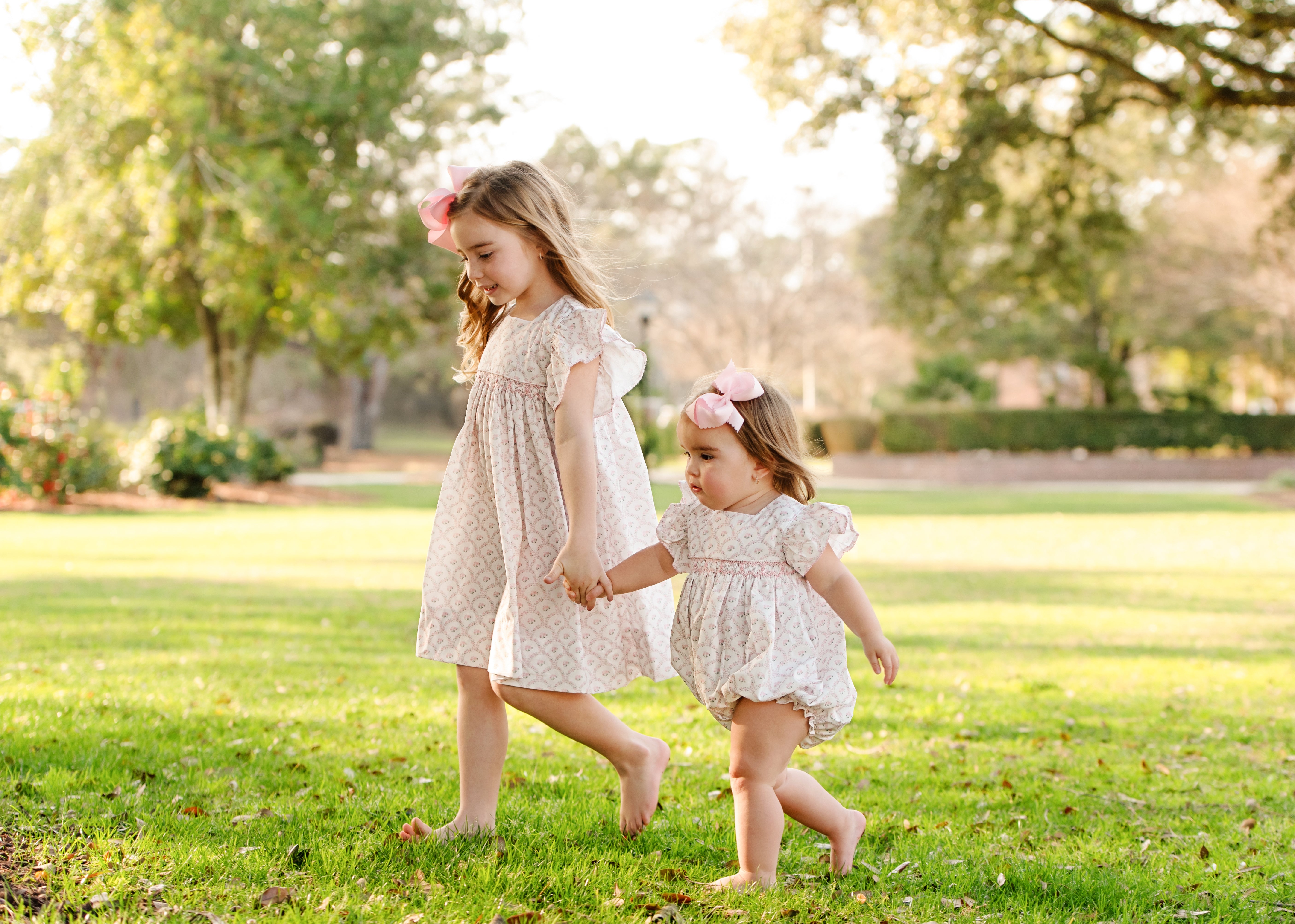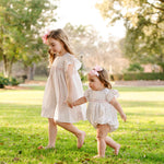 From spring to summer, this hand smocked bubble is sure to be a favorite. This bubble features a pink scalloped flowers print throughout, pink smocking across the chest, and short ruffle sleeves with pink picot trim. Snaps in the stride for easy changing.