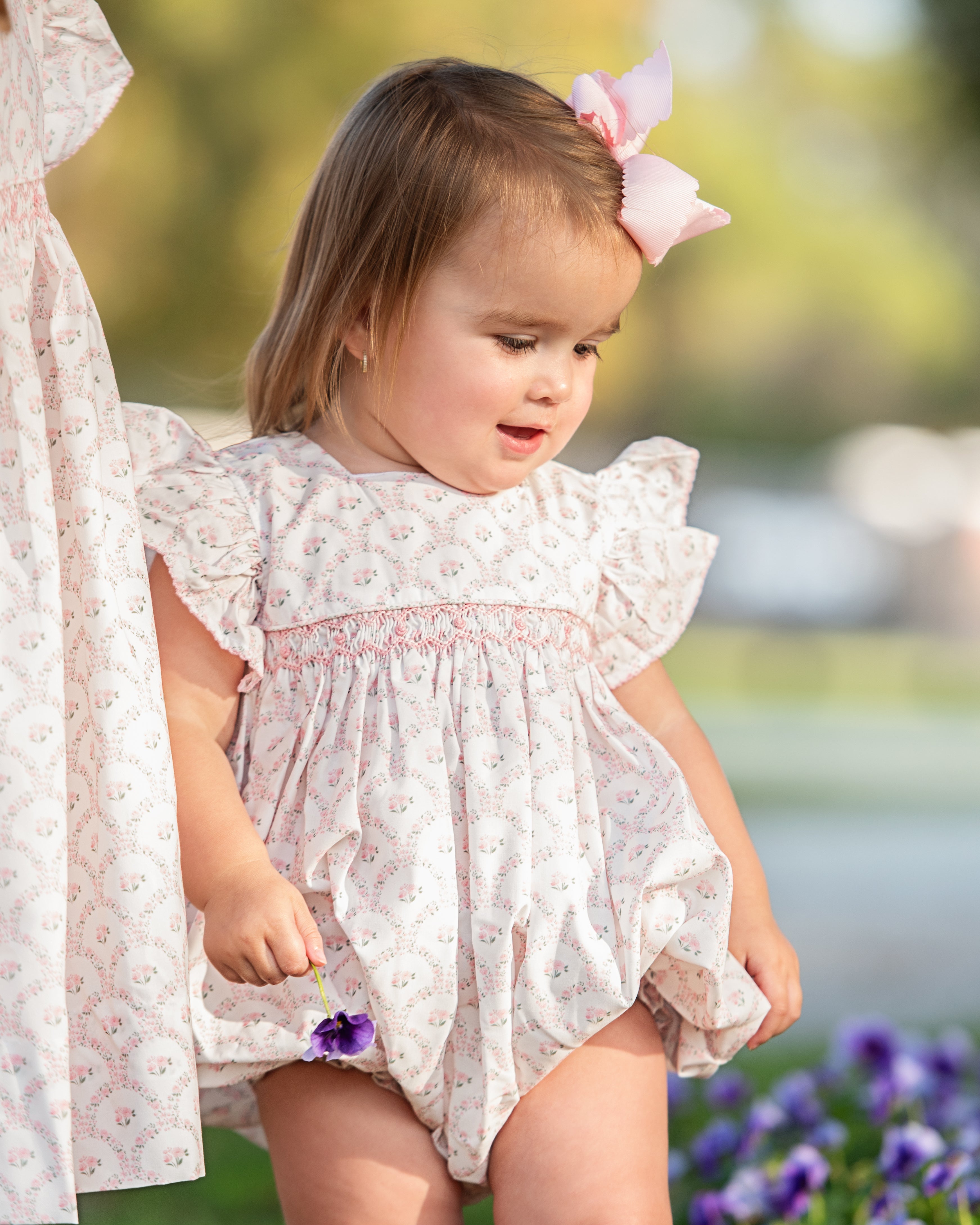 Pink Scalloped Flowers Smocked Bubble