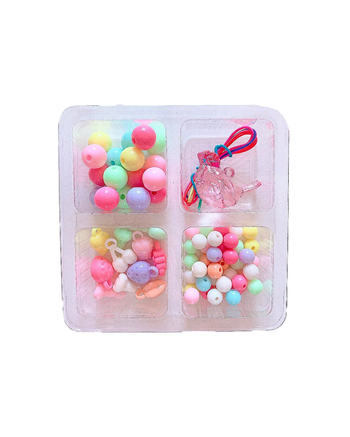 Clear Gift Box with lots of candy-colored beads and charms, more than enough for making 2 necklaces. Please note charms and beads may differ for each box. By PopCutie